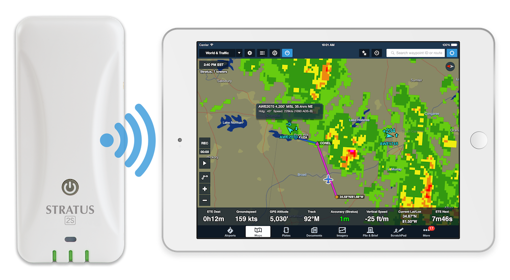 Stratus is a portable, wireless ADS-B receiver that delivers weather, traffic, and backup attitude information to your iPad and iPhone.