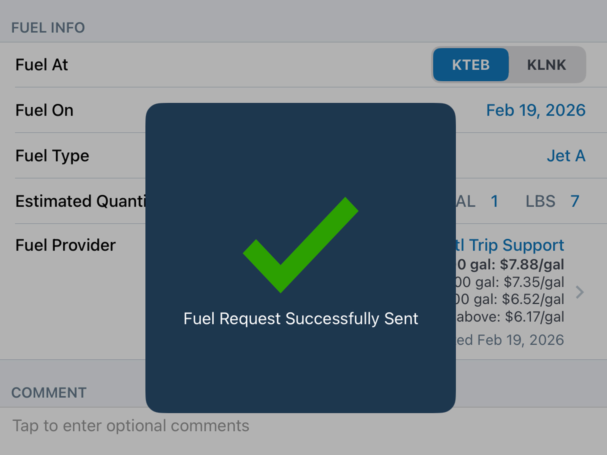 Compare JetFuelX contract prices and request fuel releases directly in the Flights view.