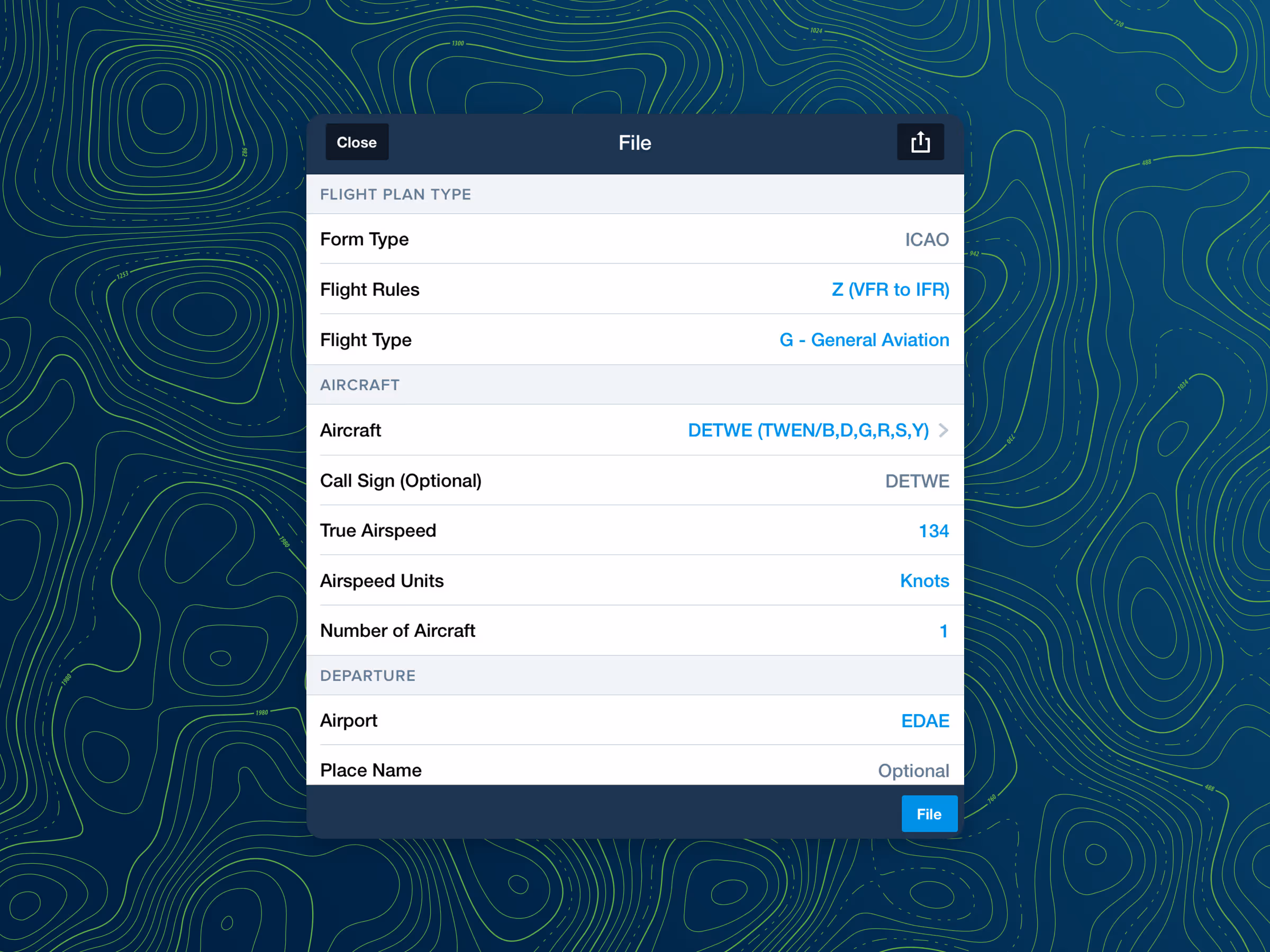 Die Richtlinien der ICAO besagen, dass, wenn die Flughafenkennung keine vierstellige ICAO-Kennung ist, „ZZZZ“ in die Felder für Abflug- und/oder Zielflughafen des Flugplans eingetragen werden muss und die Nicht-ICAO-Kennung in Feld 18 angegeben werden muss, wobei „DEP/“ für den Abflughafen und „DEST/“ für den Zielflughafen vorangestellt werden müssen. Mit ForeFlight müssen Sie sich darüber keine Gedanken machen, da dies alles automatisch für Sie erledigt wird. Geben Sie die Kennung des Ziel- und Abflughafens nach Möglichkeit als vierstelligen ICAO-Code an.
