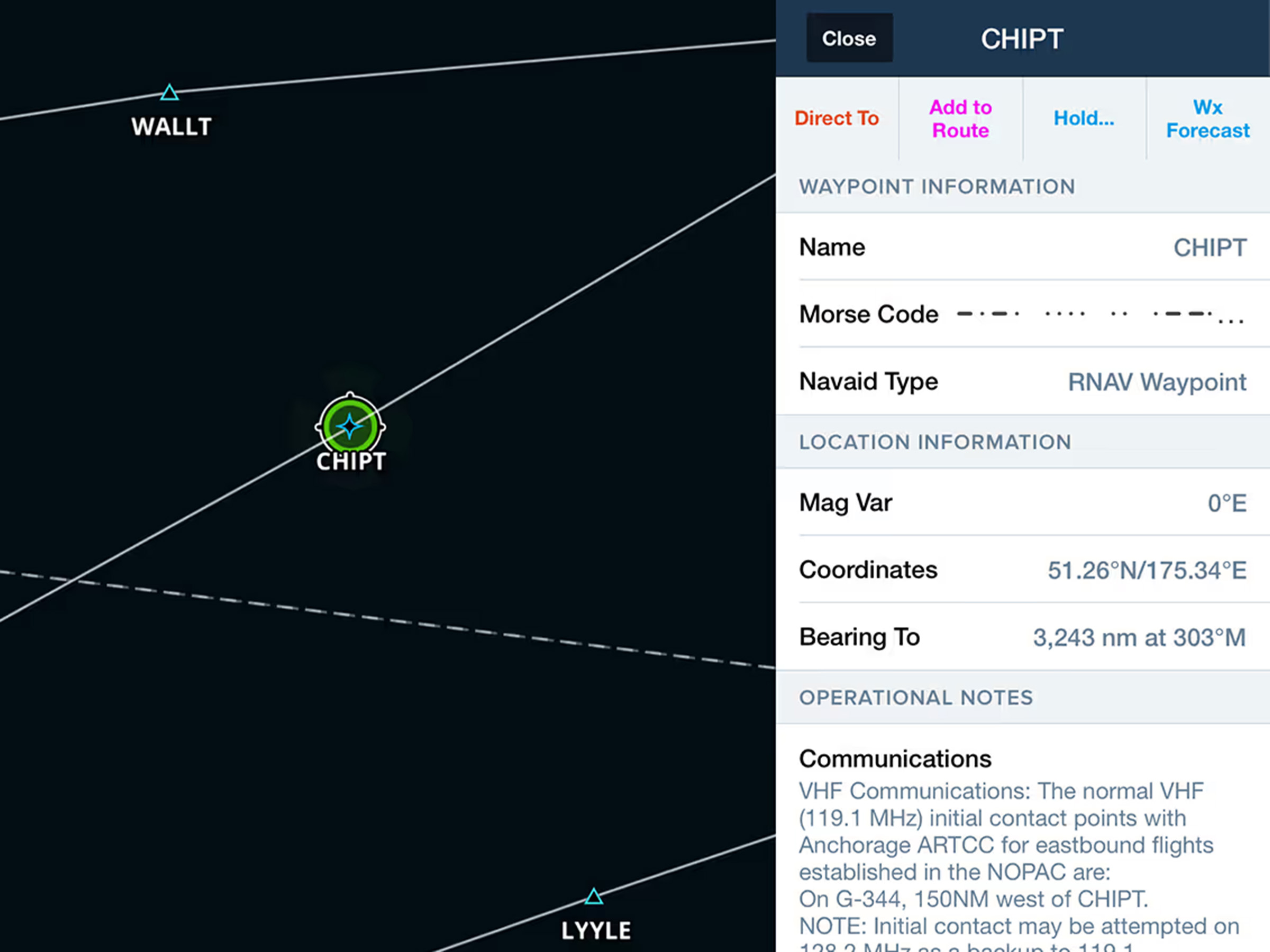 Another way to access Delay/STAY planning is to tap directly on the waypoint on the map and tap “More >” in the top right to access the same menu.