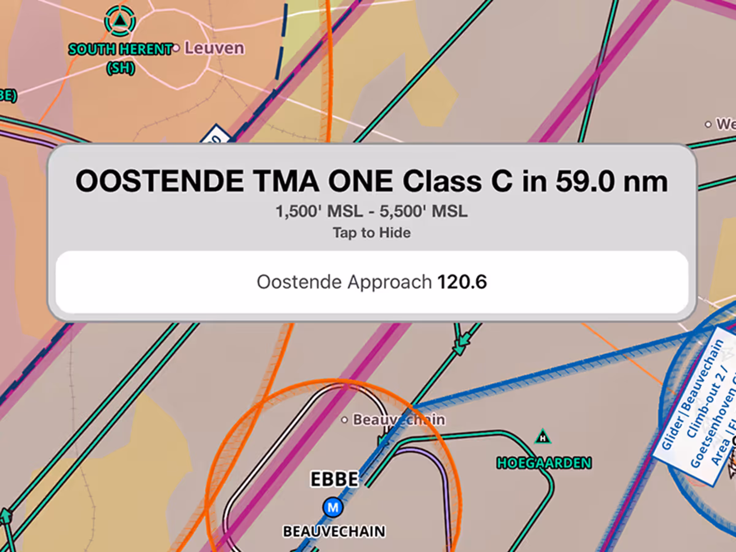 Controlled Airspace Alerts instantly deliver crucial radio frequency information as you approach an airspace, eliminating the need for manual searches. For Airspace Classes A, B, and C, all associated frequencies are displayed, excluding secondary and tower frequencies. For Classes D, ATZ, and MATZ, only the tower frequency is shown. Class TMZ alerts display both the squawk code and the frequency.