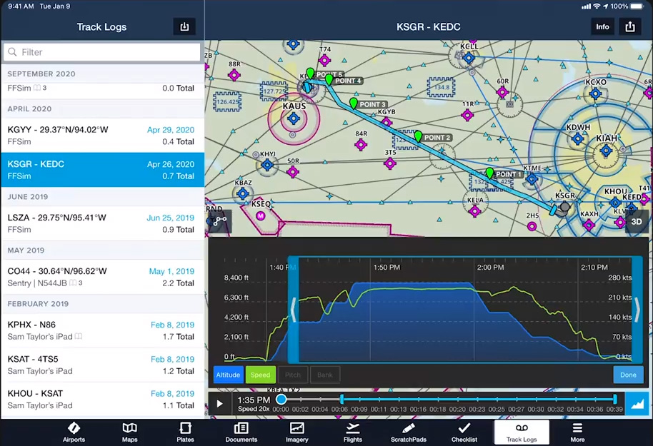Edit recorded Track Logs to more accurately line them up with the beginning and end of your flights and automatically update draft Logbook entries.