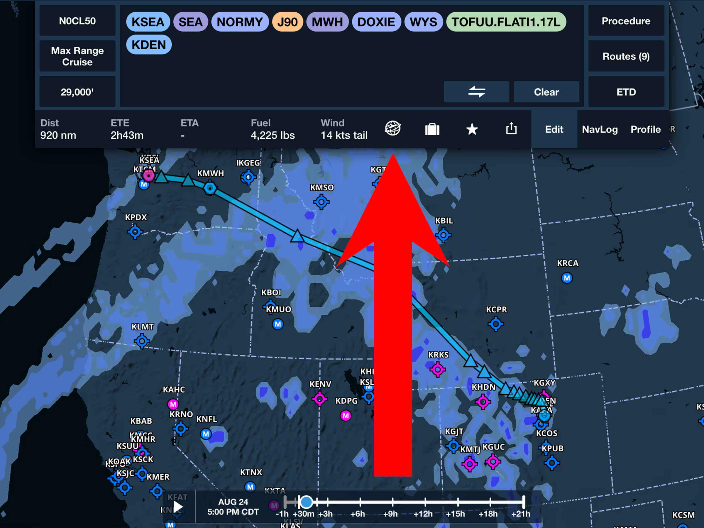 Specify the pattern altitude for a new visual approach or traffic pattern entry in Procedure Advisor to add a prominent waypoint with the TPA in your route.