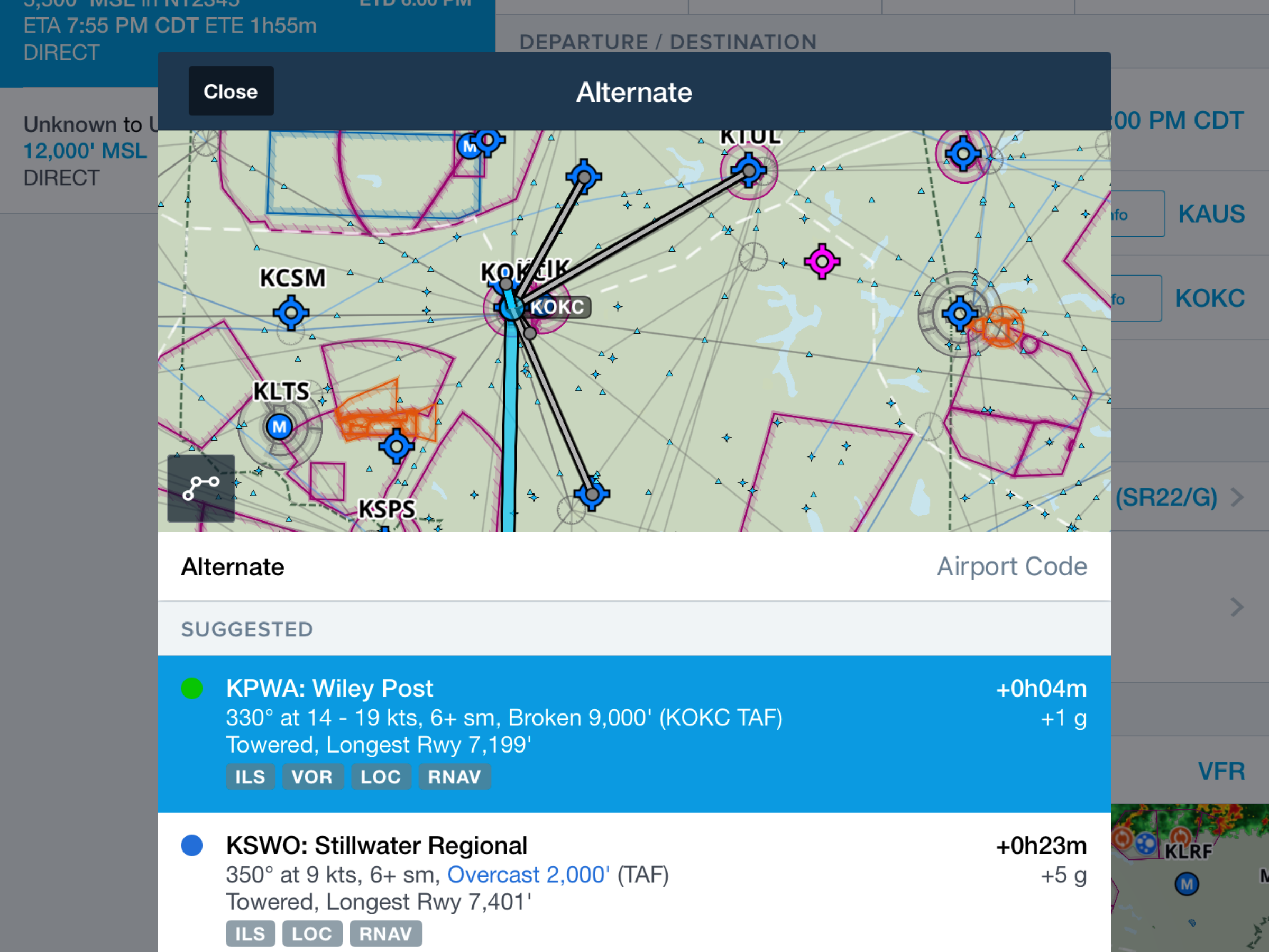 - Access Alternate Advisor by tapping in the Alternate field in the Flights view.