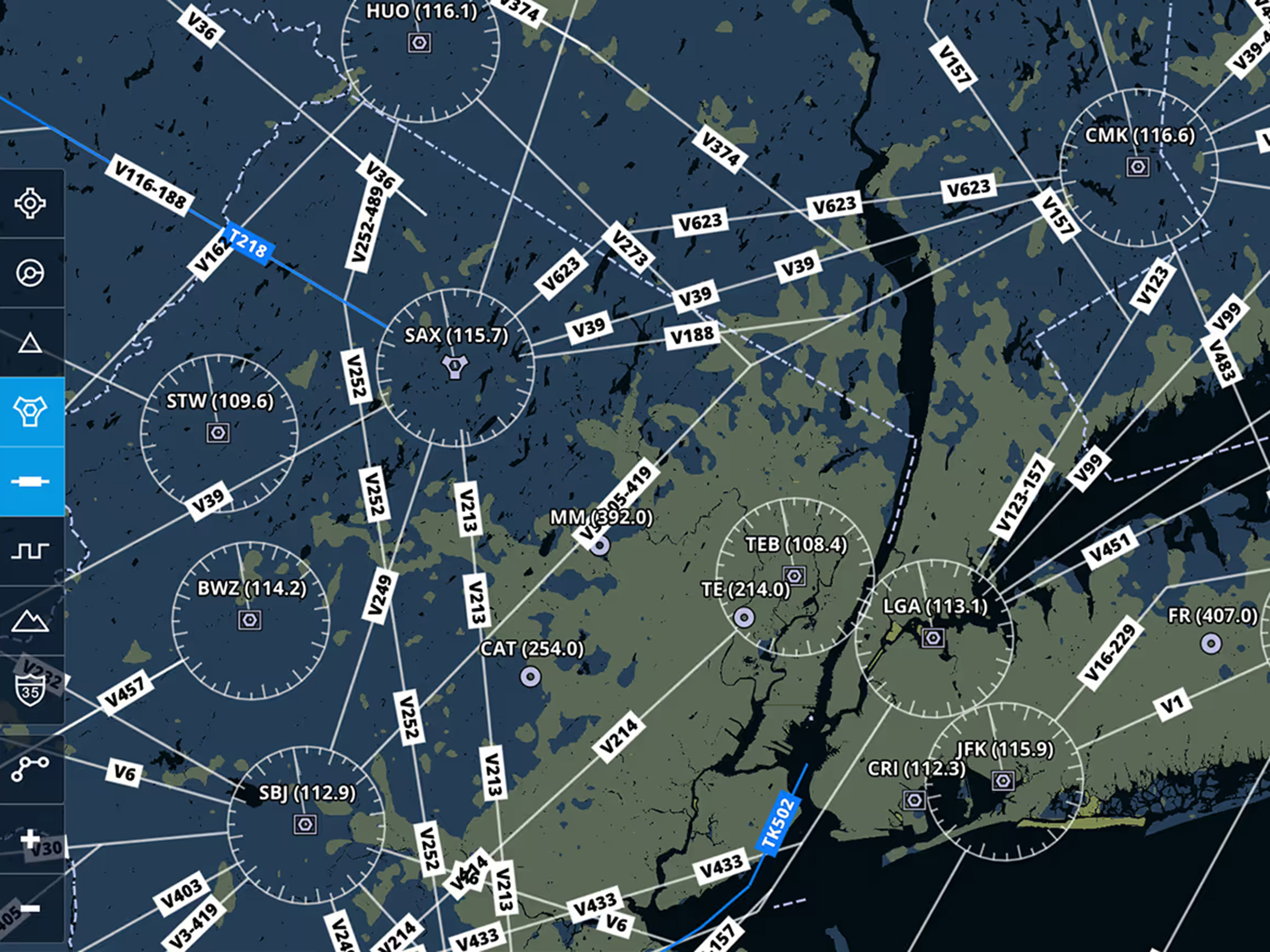 Customize Aeronautical Map with separate toggles for Airways, Navaids, and Waypoints.