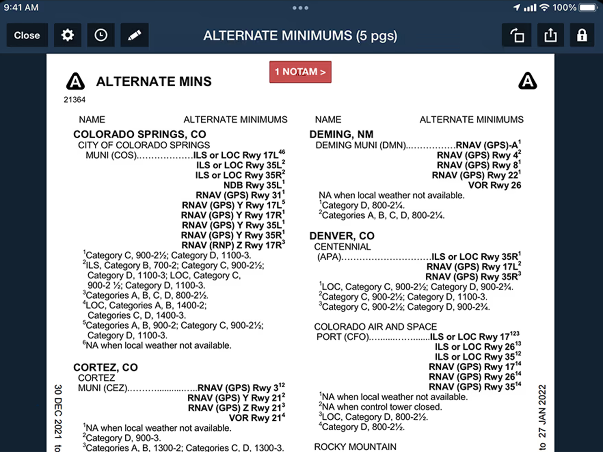 This release includes new Aeronautical Map Quick Toggles for Airways, Navaids, and Waypoints, improved functionality for Takeoff and Alternate Minimums documents, and more.
