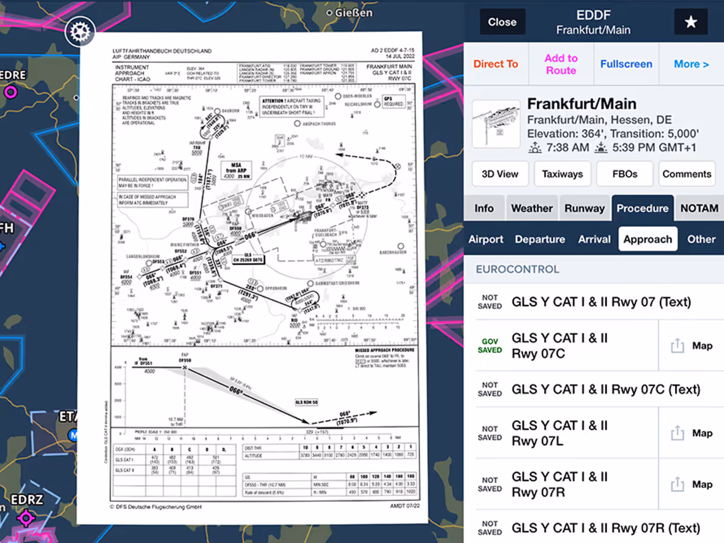 - Find and view government procedure charts and airport diagrams included with your subscription while connected to the internet without having to download them first.