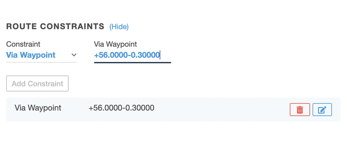 Release new flights to pilots in one of two modes - Read-Only or Editable. You can force all flight releases to use either of the two modes, ensuring that the same release mode is used for all flight plans. Learn more here. - Route Constraints: Avoid Airspace