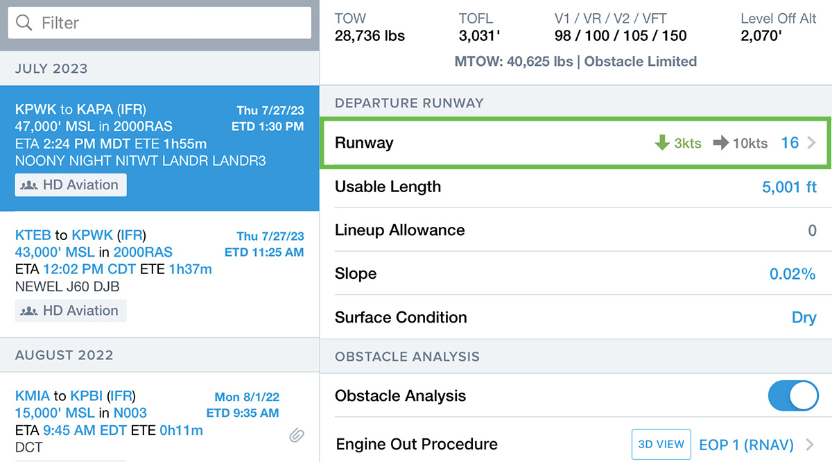 Your pilots can now modify their takeoff and landing parameters on read-only flights within ForeFlight Mobile, ensuring that the most accurate performance data is used for your flight.