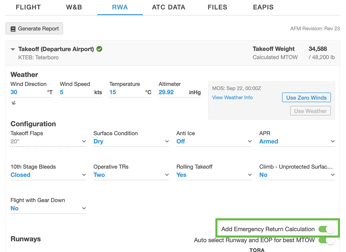Runway Analysis: Emergency Return Calculation.