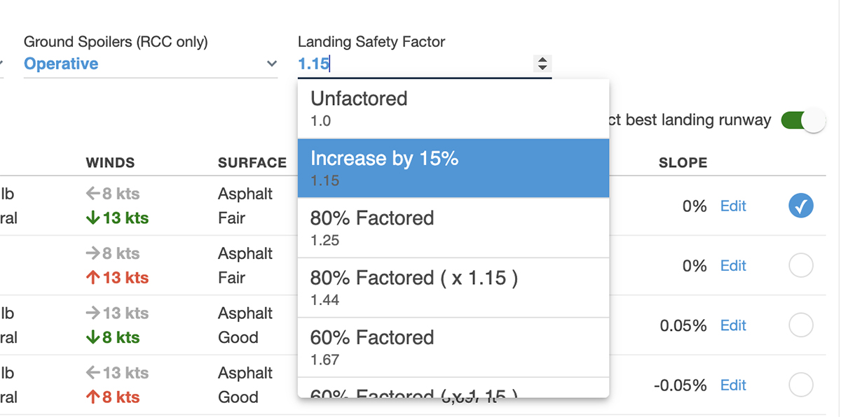 Dispatch admins are now able to exercise enhanced control over Custom Content by defining waypoint elevations and are able to publish and unpublish selected waypoints. You can express a waypoint’s elevation in feet while editing or adding a new waypoint, and can also provide waypoint elevations (in meters) while bulk importing waypoints via CSV. Both custom waypoints and custom airways also support publishing and unpublishing by admins - select all or some items in each list and click Publish in the top-right to make them available to all users in your Organization, or click Unpublish to revoke access to them. Your existing waypoints will remain published by default. - Runway Analysis: Improved Landing Factor Selection
