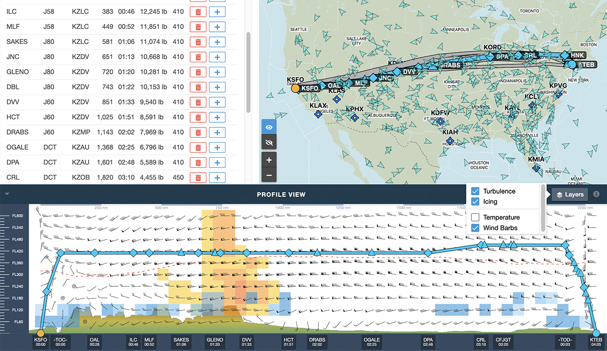 Dispatch will mark flight levels with a turbulence icon if there is turbulence at that altitude, allowing you to select the most efficient altitude for a flight.