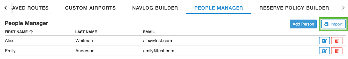 Easily upload a list of members within your organization via a .csv (Comma Separated Values) file. Format your file with columns specifying First Name, Last Name, and Email, and visit Settings > People Manger to import your list and make the newly added people available in the Flight Watchers list. - Fuel Advisor Enhancements