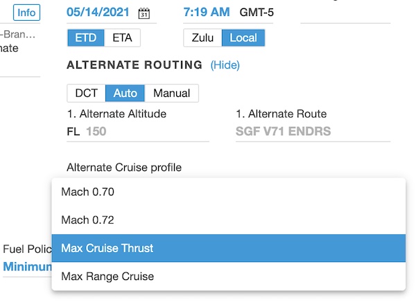 Alternate Routing Cruise Profile