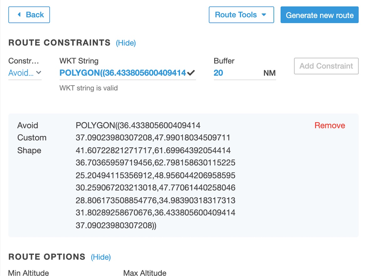 Route Constraints: Avoid Airspace