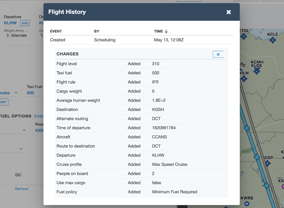 Dispatch will track the history of changes made to each flight and by whom, giving account administrators greater oversight of flight plans in the system. The “Last Change” status at the bottom of the Flight Edit view shows which user made the last change to the flight. Learn more here. - Indication of Release Type (Locked/Unlocked)