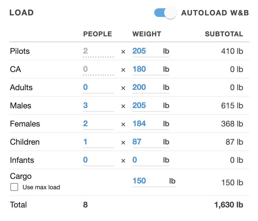 Dial in Dispatch’s time and fuel burn calculations even further with Specific Load planning that offers finer control over crew and passenger weights. While Simple mode limits you to a single average weight to be multiplied by the number of people on board, Specific mode breaks out six types of people – Pilots, Cabin Attendants, Males, Females, Children, and Infants – each with their own customizable average weight. Adjust the default average weights in Settings. Learn more here. - Custom Airports
