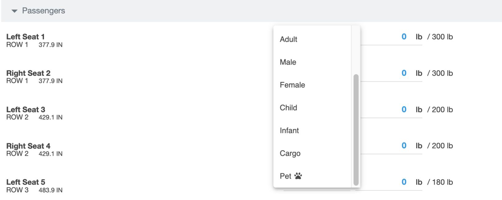 Pet Option in Weight & Balance