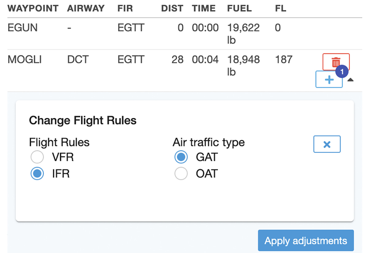 Dispatch also gives the ability to change the flight plan type in the filing modal. - Custom Navlog Builder