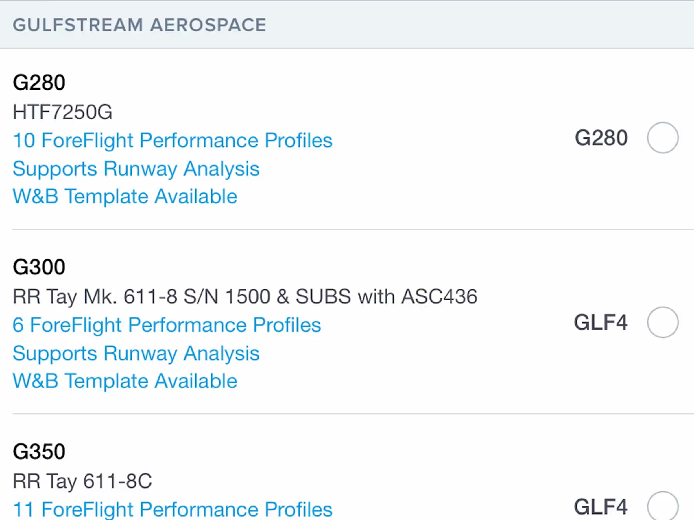 Runway Analysis now supports Embraer Legacy 450/500, Praetor 500/600, and Gulfstream G280/G300/G350/G400.