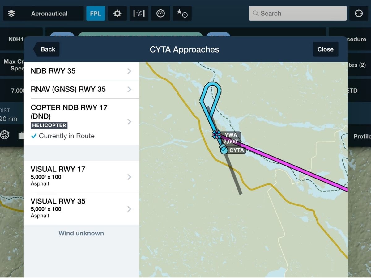 Access helicopter-specific procedures directly in ForeFlight when planning rotorcraft flights. Start by opening the FPL Drawer and tap Procedure to view all of your procedures in one place. Relevant instrument departures and arrivals appear alongside fixed-wing options in a unified interface.